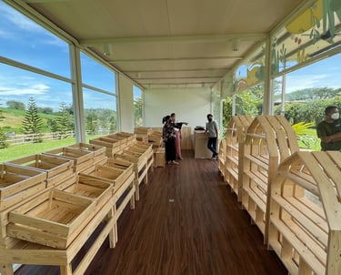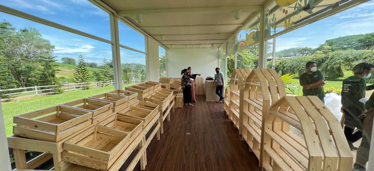 Beyond this, we also worked on sustainable interiors for Farm Fresh's JomCha outlets across Malaysia, including Johor, Melaka, Negeri Sembilan, Selangor, Terengganu, Kelantan, and KL. Additionally, we collaborated with Majalah Kuntum to host a kids’ activity workshop at UPM farm park, educating children about green materials and upcycling.