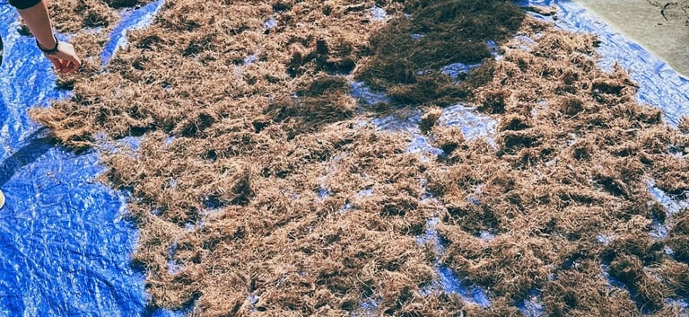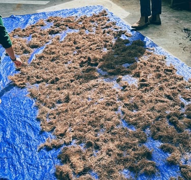 Empty fruit bunches undergoing a careful drying process, preparing for the binding stage where they will be transformed into durable, sustainable materials.
